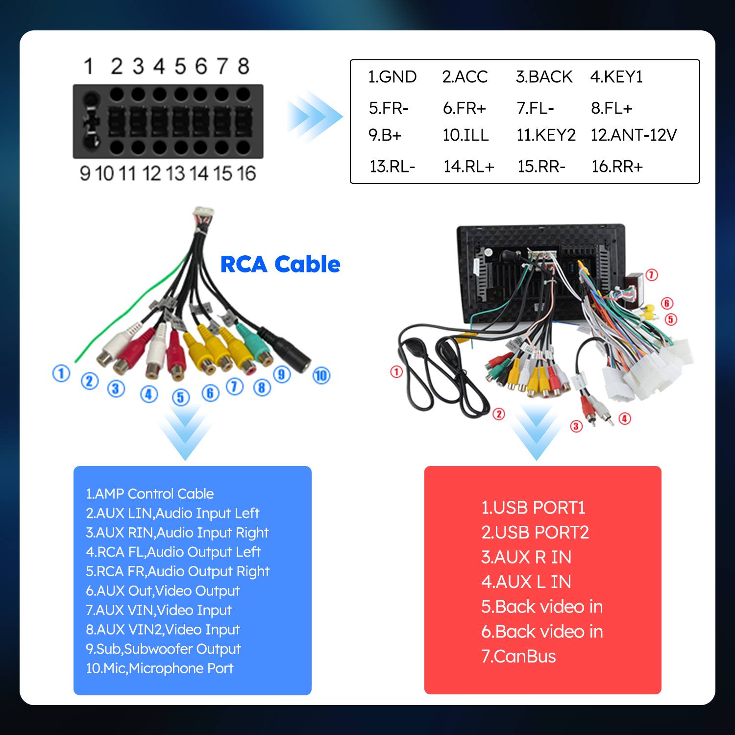 | Camera Support | AHD Backup Camera (Optional) |